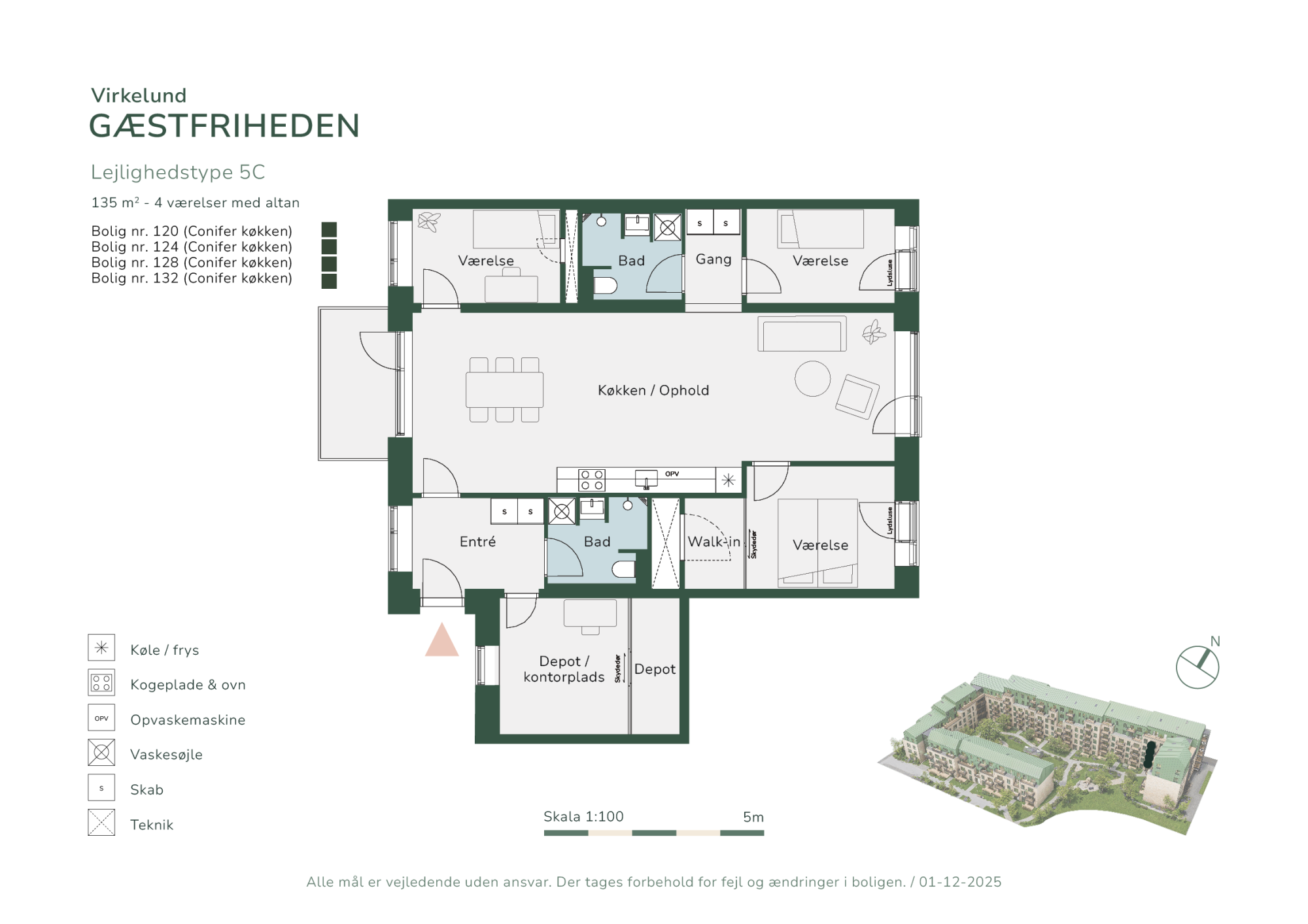 I Gæstfriheden er der boliger til alle. Her kan enlige, par, familier og modne voksne finde deres hjem med perfekte private rammer kombineret med omgivelser, der indbyder til fællesskab. I første etape udbydes 61 boliger, der spænder mellem 2-værelses fra 60 kvadratmeter til 5-værelses taglejligheder på 137 kvadratmeter. Der er derfor rig mulighed for at finde lige netop dén bolig, der passer dig.