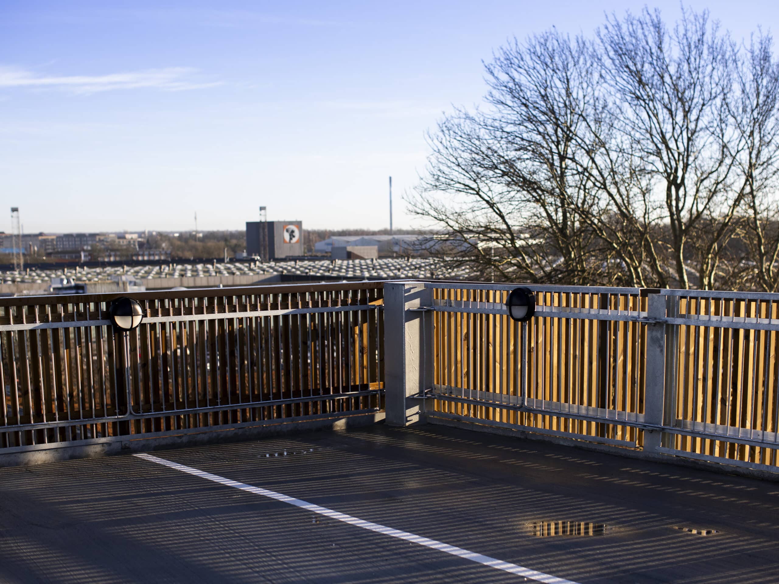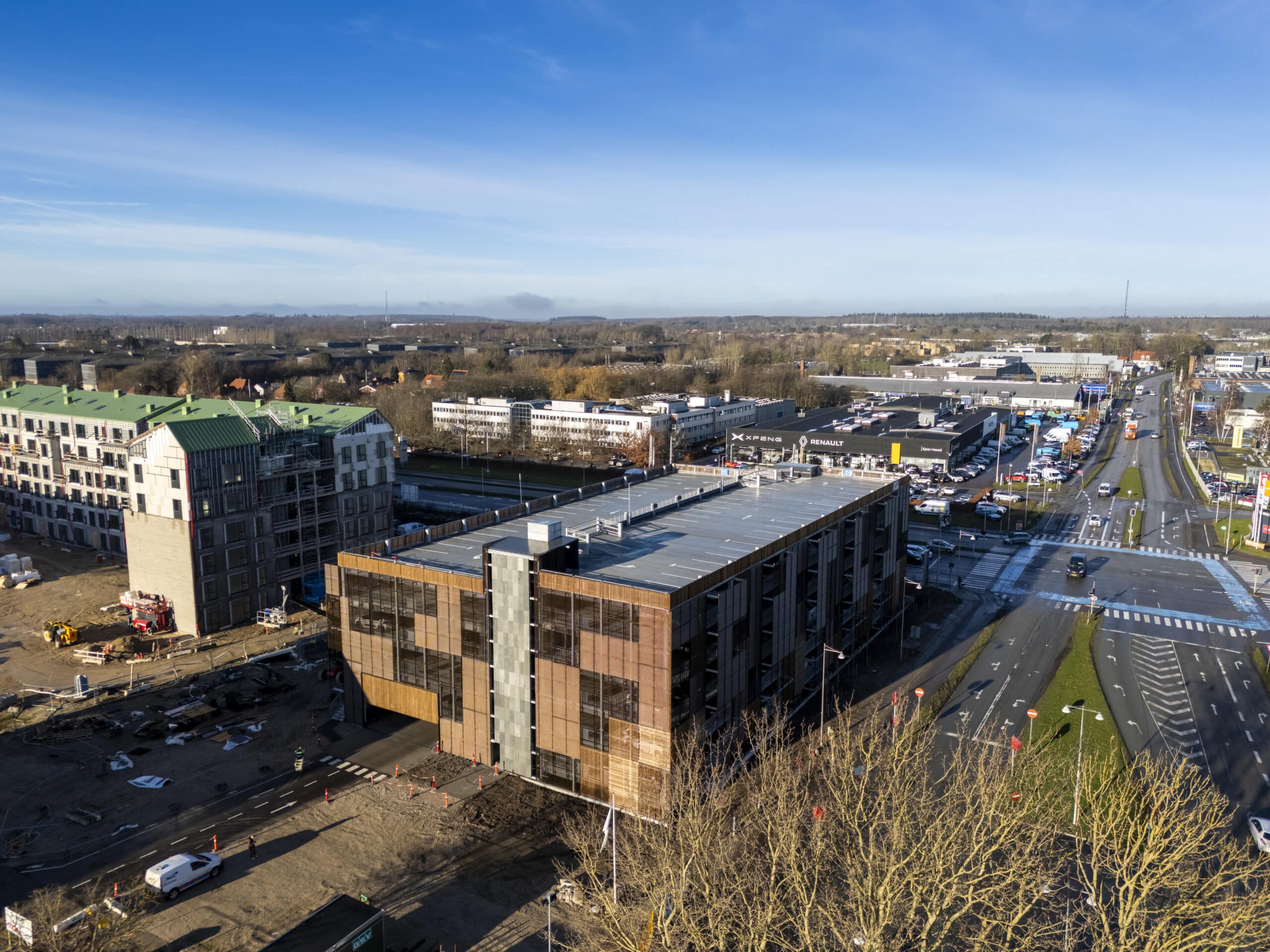 P-huset er opført med ekstra brede ramper, så trafikken op og ned i P-huset kan glide nemt. Derudover er p-huset opført med mål om at opnå en DGNB guld certificering.