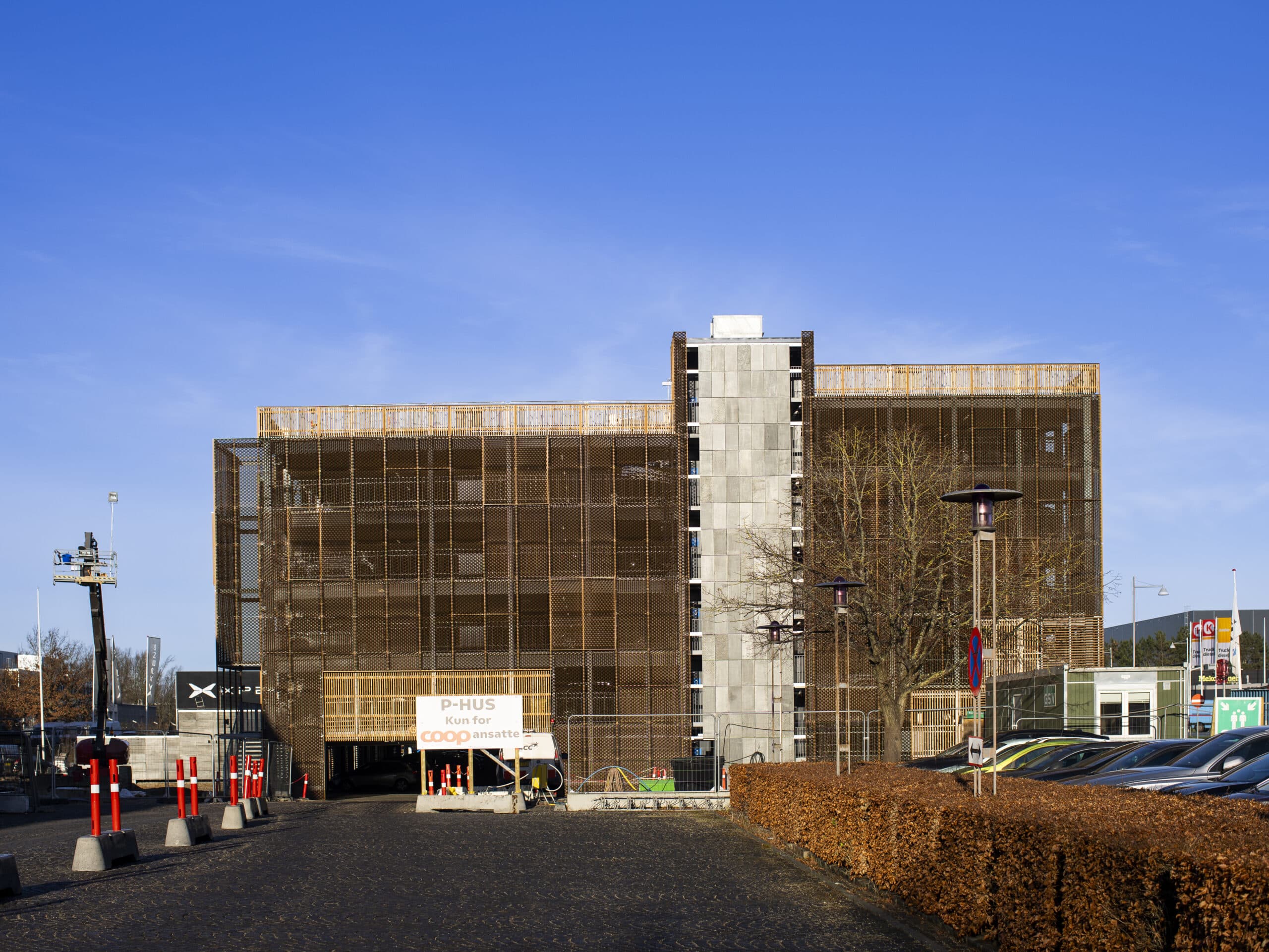 Det nye parkeringshus har 462 p-pladser i 13 forskudte niveauer. Pladserne skal stå til rådighed for både medarbejdere i Coop samt for beboere og gæster i områdets nye boliger. På den måde udnyttes p-huset dobbelt ved at rumme medarbejdernes biler i dagtimerne og beboernes efter fyraften.
