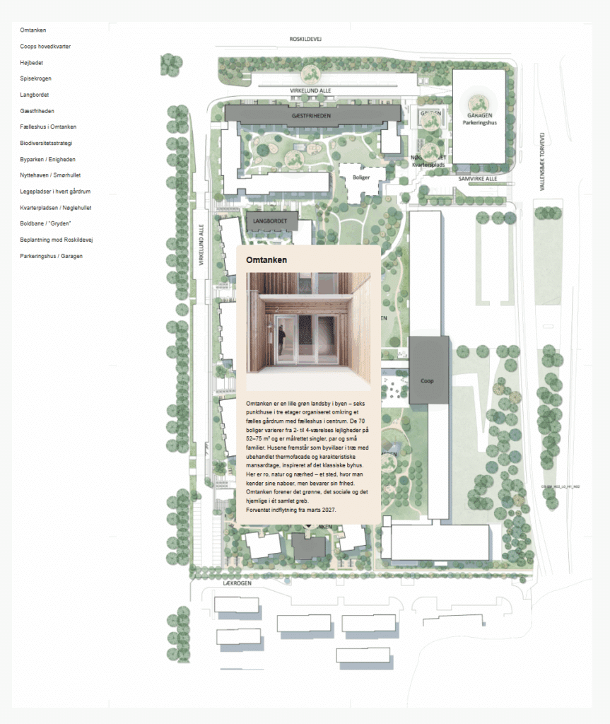 Virkelund har omtanke for både mennesker og miljø. Vi har en ambition om at være et bykvarter, hvor udeliv, fællesskab og natur bliver en central del af hverdagen.