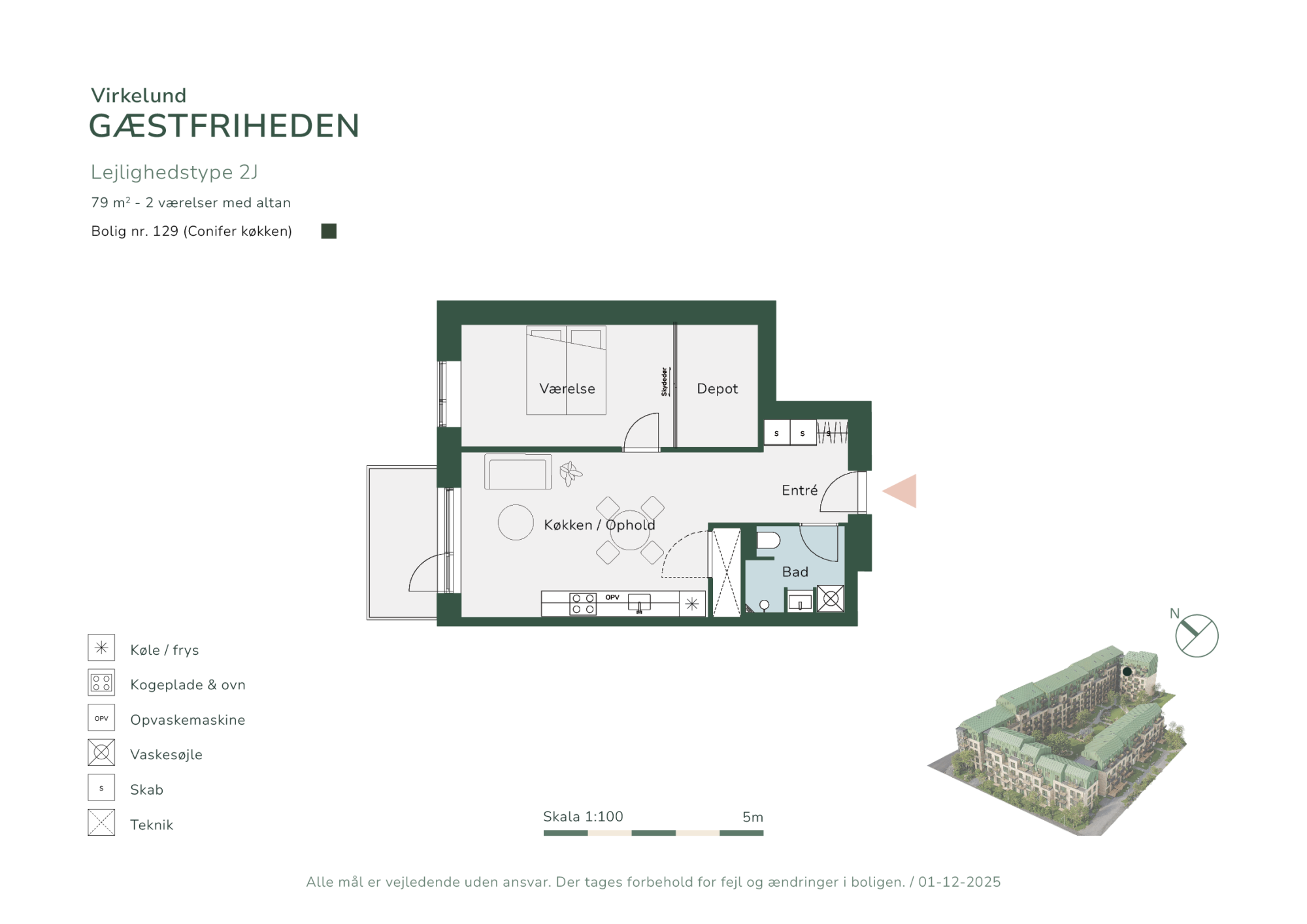 I Gæstfriheden er der boliger til alle. Her kan enlige, par, familier og modne voksne finde deres hjem med perfekte private rammer kombineret med omgivelser, der indbyder til fællesskab. I første etape udbydes 61 boliger, der spænder mellem 2-værelses fra 60 kvadratmeter til 5-værelses taglejligheder på 137 kvadratmeter. Der er derfor rig mulighed for at finde lige netop dén bolig, der passer dig.