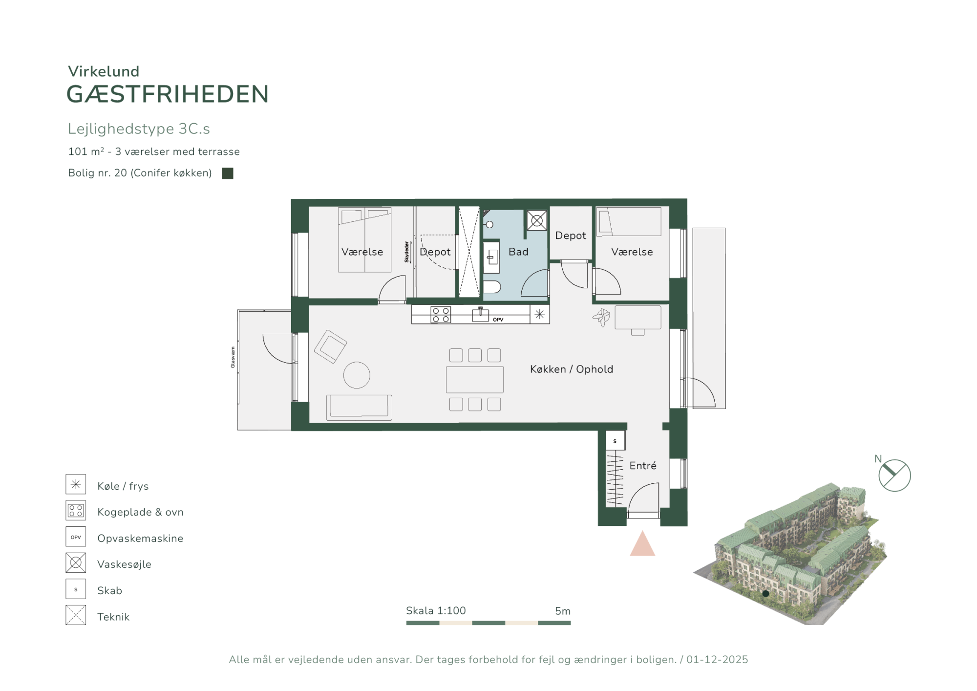 I Gæstfriheden er der boliger til alle. Her kan enlige, par, familier og modne voksne finde deres hjem med perfekte private rammer kombineret med omgivelser, der indbyder til fællesskab. I første etape udbydes 61 boliger, der spænder mellem 2-værelses fra 60 kvadratmeter til 5-værelses taglejligheder på 137 kvadratmeter. Der er derfor rig mulighed for at finde lige netop dén bolig, der passer dig.