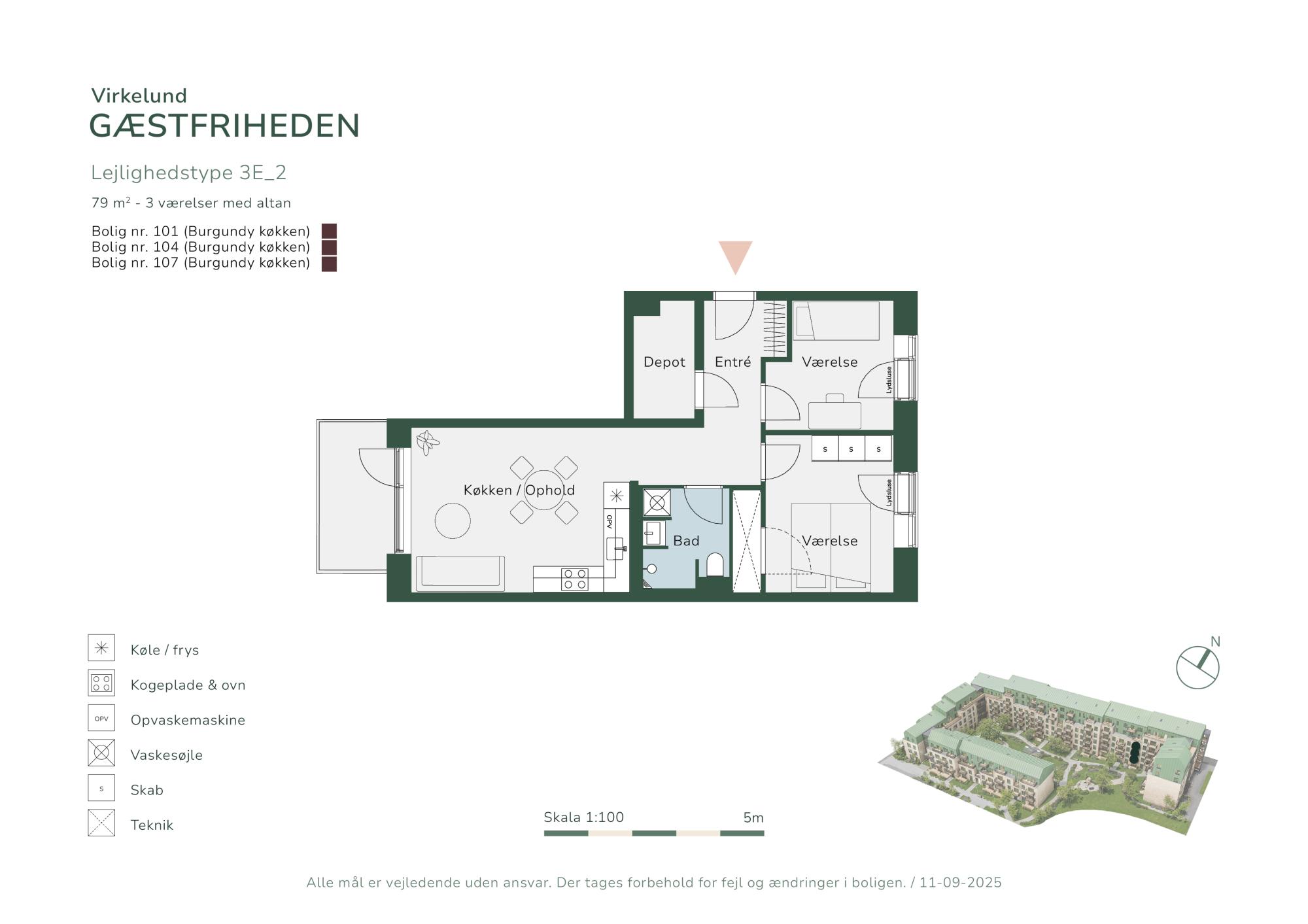 I Gæstfriheden er der boliger til alle. Her kan enlige, par, familier og modne voksne finde deres hjem med perfekte private rammer kombineret med omgivelser, der indbyder til fællesskab. I første etape udbydes 61 boliger, der spænder mellem 2-værelses fra 60 kvadratmeter til 5-værelses taglejligheder på 137 kvadratmeter. Der er derfor rig mulighed for at finde lige netop dén bolig, der passer dig.