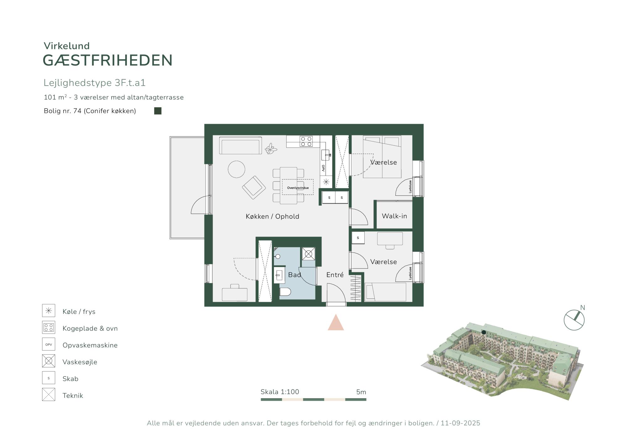 I Gæstfriheden er der boliger til alle. Her kan enlige, par, familier og modne voksne finde deres hjem med perfekte private rammer kombineret med omgivelser, der indbyder til fællesskab. I første etape udbydes 61 boliger, der spænder mellem 2-værelses fra 60 kvadratmeter til 5-værelses taglejligheder på 137 kvadratmeter. Der er derfor rig mulighed for at finde lige netop dén bolig, der passer dig.