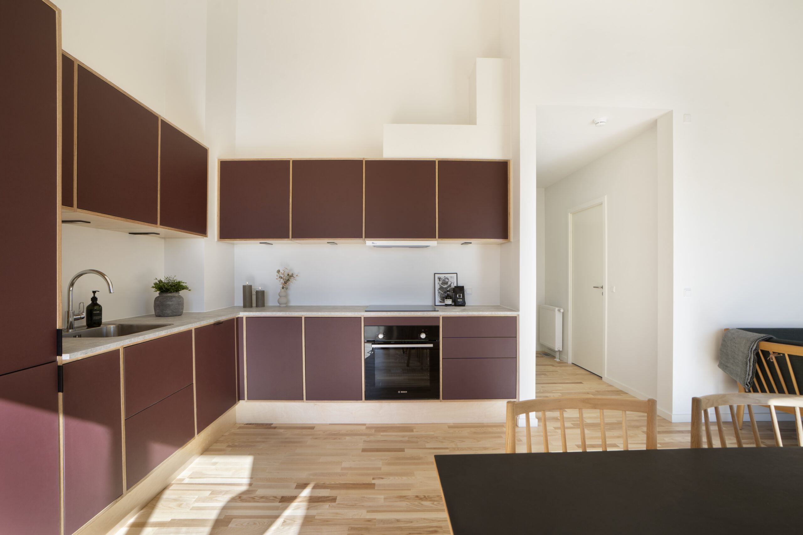 I Gæstfriheden er æstetik og funktionalitet nøgleord. Boligerne er indrettet til en moderne livsstil med lyse rum, gode planløsninger og lækre detaljer. Blandt andet er boligerne indrettet med køkkener fra Stykka, der foruden produktion under bæredygtige hensyn, bringer farve ind i boligen.