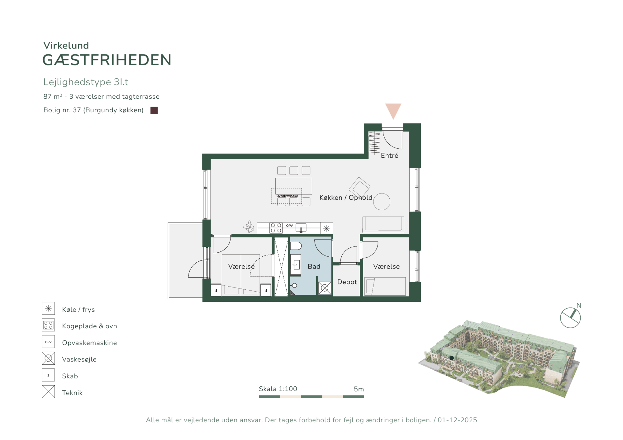 I Gæstfriheden er der boliger til alle. Her kan enlige, par, familier og modne voksne finde deres hjem med perfekte private rammer kombineret med omgivelser, der indbyder til fællesskab. I første etape udbydes 61 boliger, der spænder mellem 2-værelses fra 60 kvadratmeter til 5-værelses taglejligheder på 137 kvadratmeter. Der er derfor rig mulighed for at finde lige netop dén bolig, der passer dig.