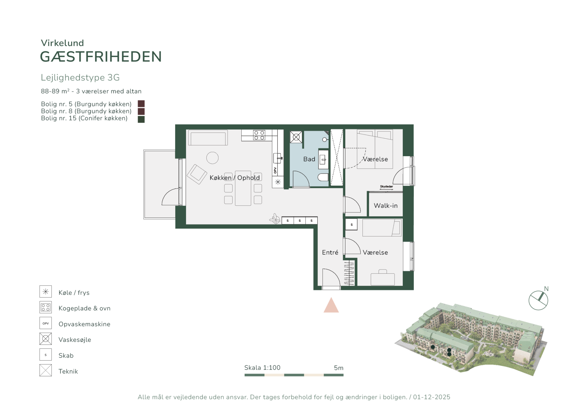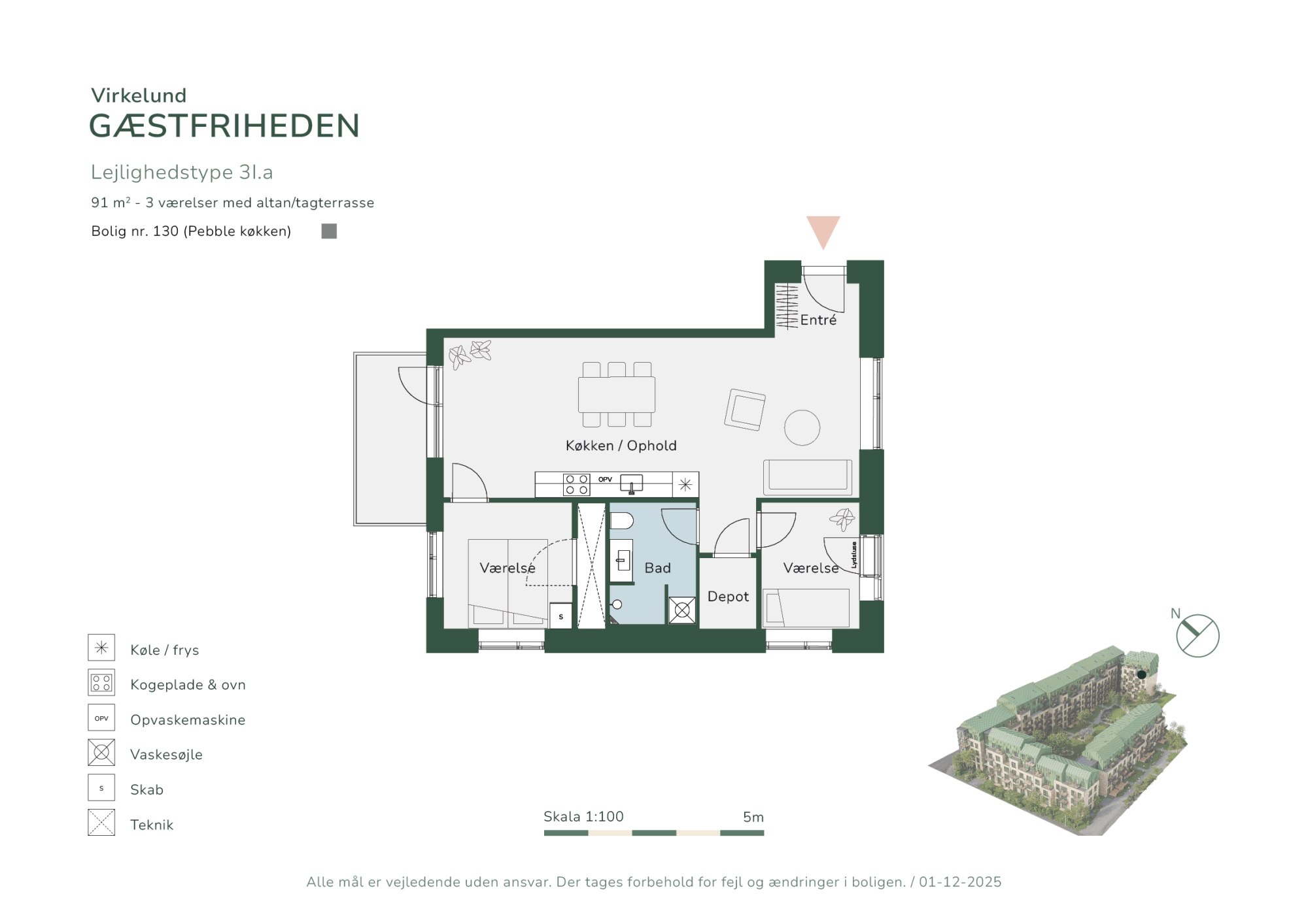 I Gæstfriheden er der boliger til alle. Her kan enlige, par, familier og modne voksne finde deres hjem med perfekte private rammer kombineret med omgivelser, der indbyder til fællesskab. I første etape udbydes 61 boliger, der spænder mellem 2-værelses fra 60 kvadratmeter til 5-værelses taglejligheder på 137 kvadratmeter. Der er derfor rig mulighed for at finde lige netop dén bolig, der passer dig.