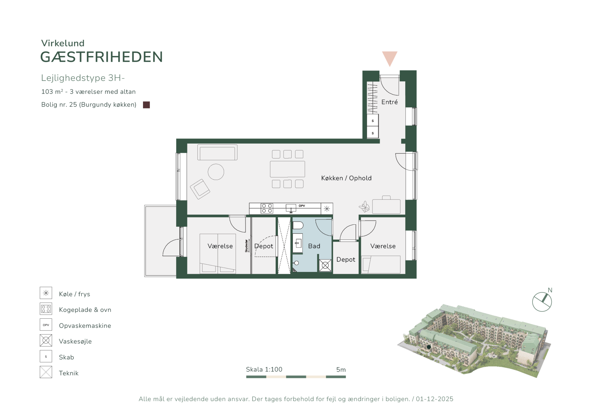 I Gæstfriheden er der boliger til alle. Her kan enlige, par, familier og modne voksne finde deres hjem med perfekte private rammer kombineret med omgivelser, der indbyder til fællesskab. I første etape udbydes 61 boliger, der spænder mellem 2-værelses fra 60 kvadratmeter til 5-værelses taglejligheder på 137 kvadratmeter. Der er derfor rig mulighed for at finde lige netop dén bolig, der passer dig.